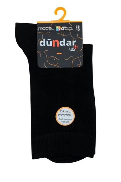 Modal lifin ipeksi dokusu bu Dündar kadın çorapta ilk temastan hissediliyor. Siyah renkteki modelin yüzeyi mat ve pürüzsüz; orta boy konç kesim ayak bileğini tamamen kapatar ve eteğin altında düzgün bir hat oluşturur. "4 Mevsim" etiketiyle üretilen çorap, ince yapısı sayesinde hem yaz hem kış ayakkabılarının içinde kalınlık yaratmadan oturuyor. Yazlık sandaletlerden kışlık botlara kadar farklı ayakkabı tipleriyle uyumlu.