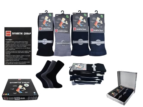 Bambu Erkek Dikişsiz Diyabetik Şeker Çorabı 12'li Şirin 8100 - 12 ADET