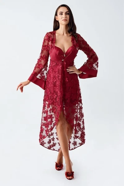 Çapraz Askılı Asimetrik Sabahlık 2'li Saten Gecelik Takımı İmaj 2410