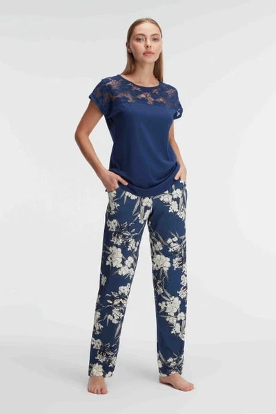 Cepli Çiçek Desenli Dantel Detaylı Kadın Pijama Takımı Anıl 9910