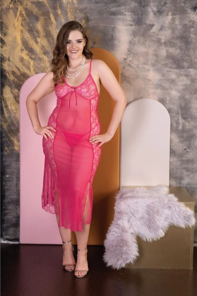 Çift Yırtmaçlı Uzun Büyük Beden Gecelik Takımı İzabel 5006