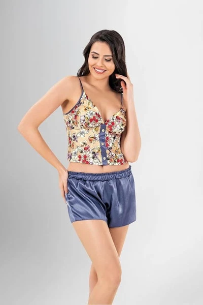 Düğmeli Büstiyer 3lü Şort Sabahlık Takımı Ahu Loriva 1905