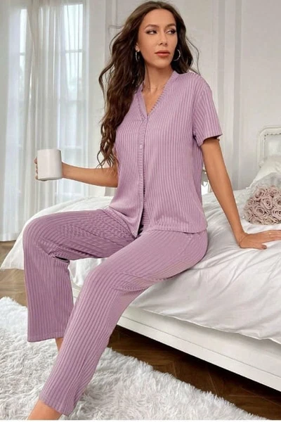 Düğmeli Kısa Kollu Lila Pijama Takımı Bella Notte 7117