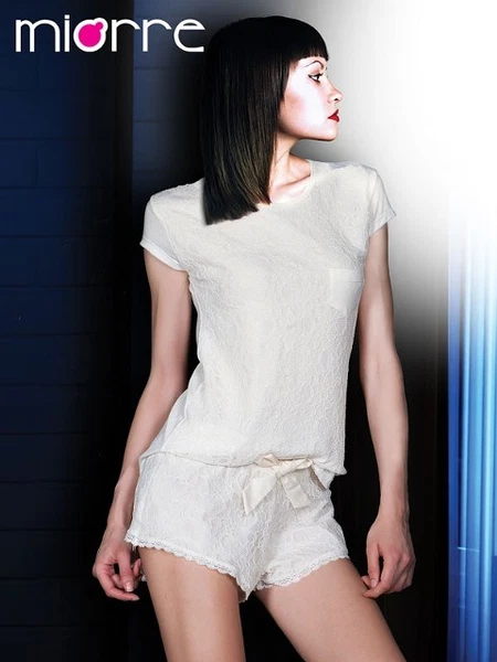 Ekru Şık Miorre Bayan Şortlu Pijama Takımı
