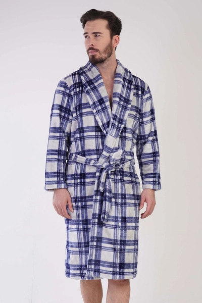 Erkek Polar Sabahlık Lacivert Kareli Kuşaklı Vienetta K310082