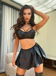 Etekli Erotik Deri Fantazi Büstiyer Takım Beleng 9705