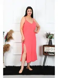 % 34AkbenizBüyük Beden İp Askılı Yırtmaçlı Somon Uzun Gecelik Akbeniz121001.097,85 TL%25 İndirim823,39 TL