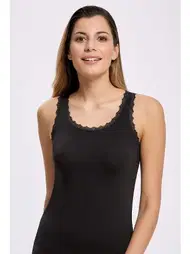 Siyah Pamuk Güpürlü Geniş Askili Atlet İlke 2207