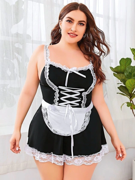 İp Bağlamalı Dantelli Fantazi Hizmetçi Kostümü NightLight 3500