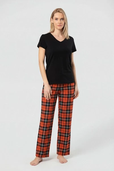 Kadın Ekoseli Pijama Takımı Türen T3618/Turuncu 2