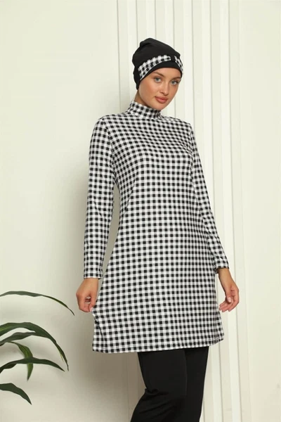 Kareli Tam Tesettür Dijital Desenli Mayo 31040