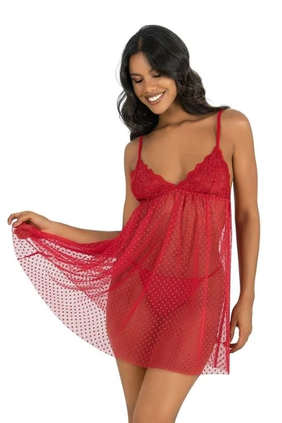 Kırmızı Kısa Dantelli Tül Gecelik Ahu Primoda 4243
