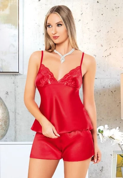Kırmızı Saten Şortlu Kadın Pijama Takım Miss Laris 3092