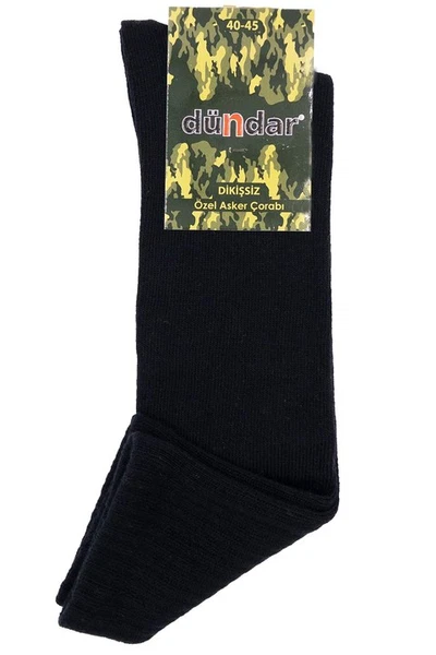 Zorlu koşullarda dayanıklılık arayan ayaklar için üretilen Dündar pamuklu havlu asker çorap, sıkı ribli örgüsü ve koyu renk seçenekleriyle askeri kullanım standartlarına uygun tasarlandı. Kamuflaj desenli kartela etiketi bu konumlandırmayı yansıtırken, pamuklu kumaşın üzerine eklenen havlu katmanı taban bölgesinde yastıklama ve darbe emilimi sağlar.
