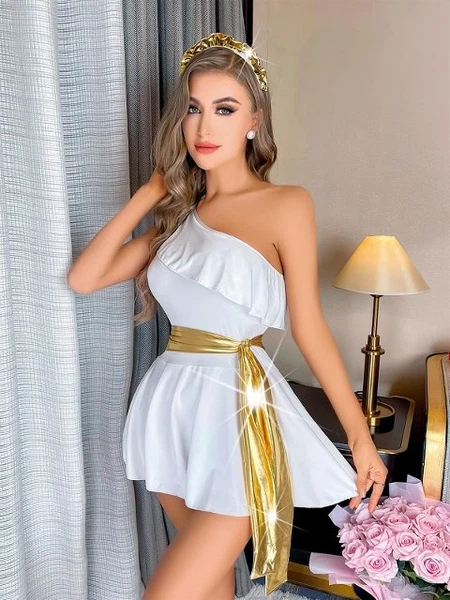 Kuşaklı Taçlı Tek Omuz Fantazi Mini Gecelik Nightlight 3595