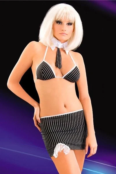 Mafya filmi atmosferini yatak odasına taşımak isteyenler için La Blinque fantezi mafya kostüm, siyah-beyaz dikey çizgili kumaştan üretilen bikini sütyen ve mini etek ikilisinden oluşur. Beyaz gömlek yaka ve siyah kravat aksesuar olarak sete dahildir.