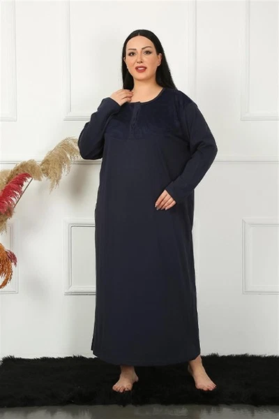 Lacivert Dantelli Büyük Beden Gecelik Akbeniz 1355