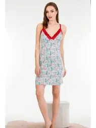 Yeşil Desenli Kısa Gecelik Lady 6172