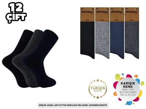 Lambswool Dikişsiz Yıkamalı Kokulu Kadın Yün Çorap 12'li Dündar 5916