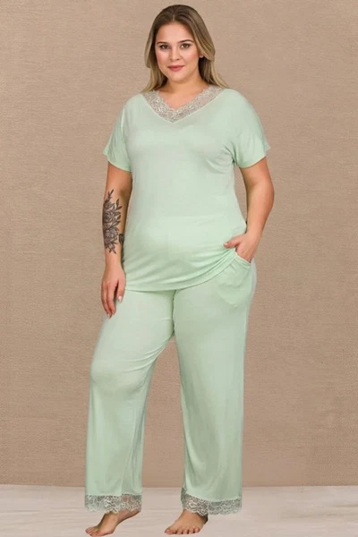 Mint Yeşili Penye Büyük Beden Pijama Takımı Lady B-637