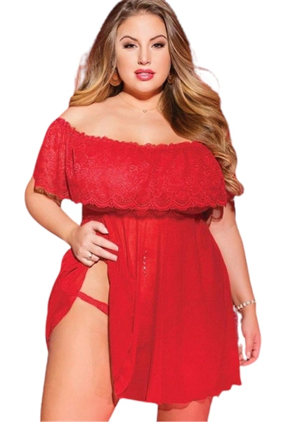 Nightlight Üst Kısmı Dantel Alt Kısmı Likralı Tül Fantazi Büyük Beden Gecelik 3174