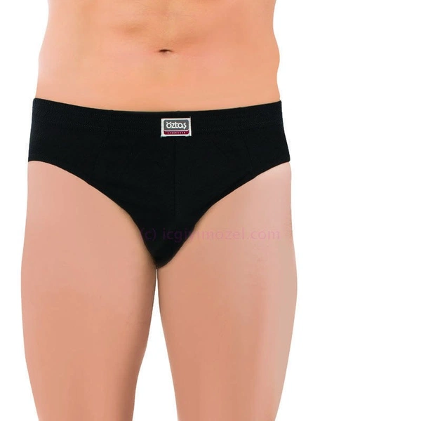 Geniş elastik bel bandı ve dar kesimi ile gün boyu rahat bir kullanım sunan Öztaş Erkek Siyah Tanga A-1122, mat siyah kumaş yüzeyiyle sade ve temiz bir görünüm oluşturuyor. Bel bandı ortasındaki Öztaş logosu markanın imzasını taşıyor. Sıkı dokuma yapısı vücuda oturan kararlı bir kalıp çiziyor.