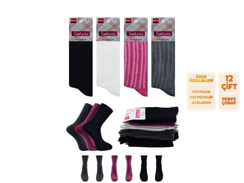 Pamuklu Desenli Soket Kadın Çorap 12'li Şirin 0640-3 - 12 ADET