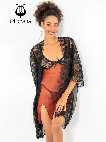Phevos 3lü Kiremit Gecelik ve Sabahlık Takımı