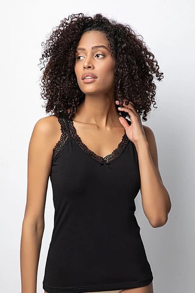 Siyah Kadın Likralı Dantelli Atlet Donex 3286
