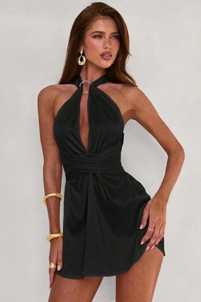 Siyah Mini Dekolteli Seksi Kadın Elbise Real Passione E1056
