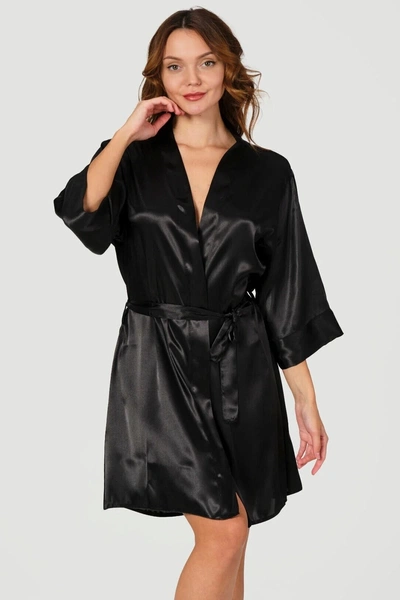 Siyah Saten Yazı İşlemeli Kuşak Bağlamalı Bride Sabahlık NBB 3232