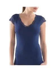 BlackSpade Kadın Dantelli Lacivert T-Shirt 1348