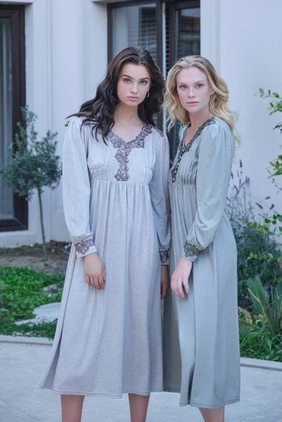 Yakası Kolları İşlemeli Hamile Lohusa Gecelik Bone Club 5533