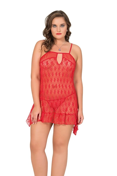 Yakası Transparan Büyük Beden Fantazi Tül Gecelik Moongirl MNL10050