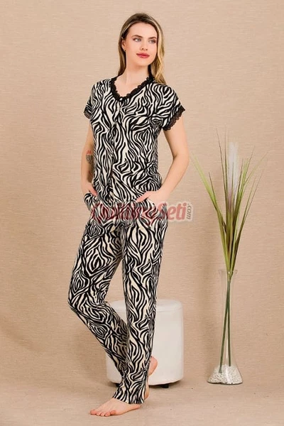 Zebra Desenli Pamuk Viskon Kısa Kol Pijama Takımı Lady 12497